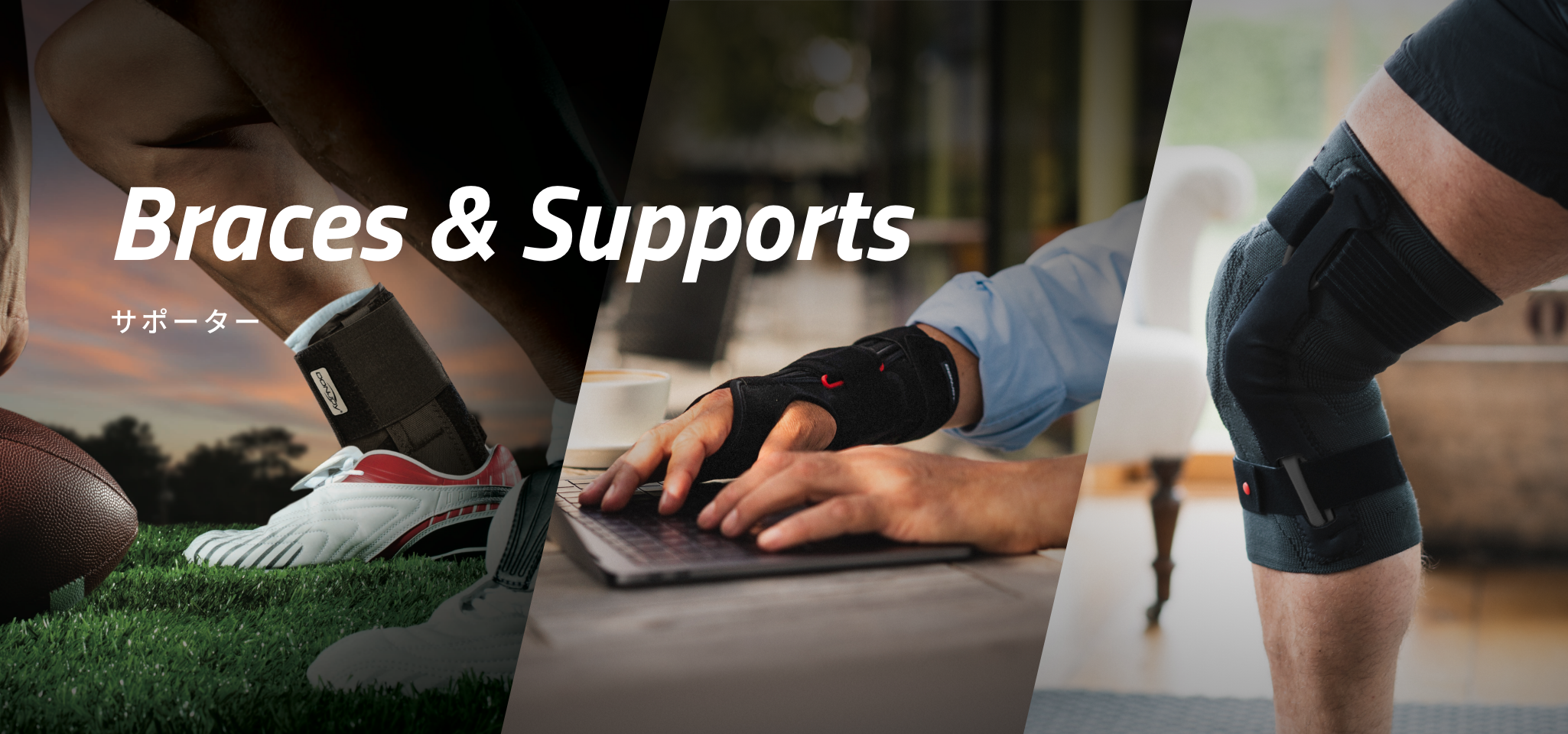 硬度を高めたプラスチック製のヒンジとストラップで動揺性のある膝関節をサポート |
